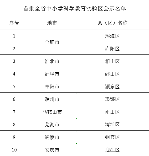 近日,安徽省教育厅网站发布《关于首批全省中小学科学教育实验区、实验校评审结果的公示》,具体内容如下: