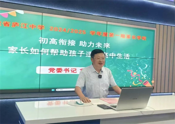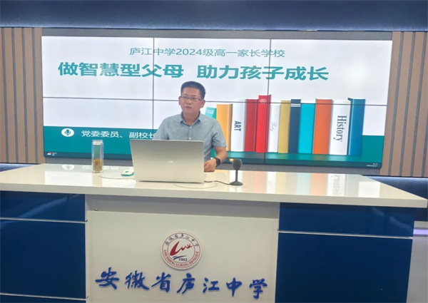 为全面推进素质教育,立德树人,让家长更好了解学生,了解学校、老师,实现良好的家校沟通,发挥家长及家长学校的育人功能,形成学校教育、家庭教育的良性互动,创造有利于学生健康成长的环境,形成家校教育合力,8月26日至27日,庐江中学举办新学年第一期家长学校讲座,高一年级全体家长参加了讲座。校党委书记袁国道,党委副书记、校长周丽华,党委委员、副校长姚贤文,政教处主任鲍胜平,教务处副主任、高一年级部部长时泽军先后为家长授课。