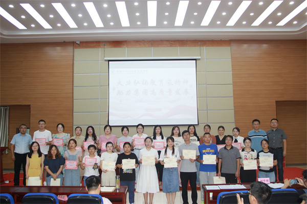 最后,焦长俊肯定了在过去一学年中,学校,教师及学生在各项教育教学活动中所取得的成就,号召所有老师大力弘扬教育家精神,做好教育教学的各项工作;坚守一个理念,把每一位学生都放在心上;坚持一条主线 ,培养学生的良好习惯;培育好一个德育群体,落实到行动上,努力成为“五高教师。