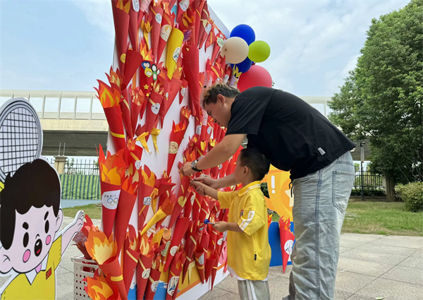 孩子们在打卡墙上迫不及待的放上自己亲手制作的“火炬”,小小的火炬承载着小朋友们对新学期的期盼。