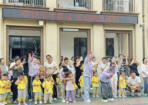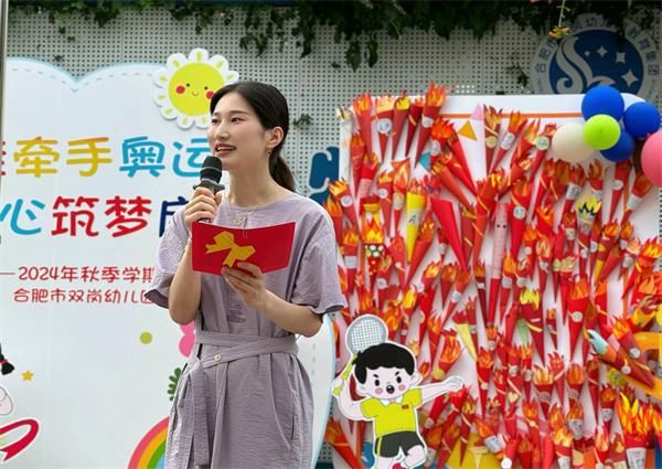 秋风吹来了新的期盼,秋日的朝阳洒下新学期的微光,沐浴着温暖的晨光,带着欢聚重逢的喜悦,9月2日,在合肥市双岗幼儿园党支部书记、集团总园长余冬梅的统筹安排下,双幼源水分园举行了《萌娃牵手奥运 童心共筑启航》开学典礼,在幼儿心中埋下一颗爱运动的种子,开启孩子们的新学期、幼儿园的新篇章。