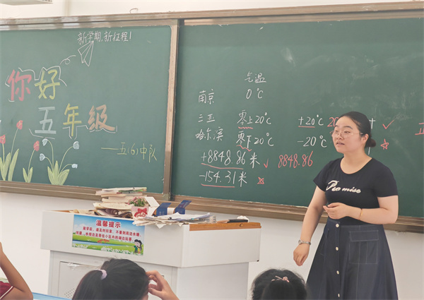 数学学科的王森老师,第一节课巧妙地利用炎炎夏日的天气作为引子,将气温这一日常现象与数学知识紧密相连。她通过多样化的表达方式,让抽象的数学概念变得贴近生活、易于理解。在循序渐进的引导中,孩子们自然而然地触及了“负数”这一新领域,体会到了数学在生活中的广泛应用与独特魅力。五年级的徐敬华老师,第一节课则以其独特的幽默感为数学课堂平添了几分生动与活力。在他的引领下,教室里不时回荡起学生们朗朗的笑声,仿佛连空气中都弥漫着探索知识的愉悦氛围。师生们在这片充满乐趣的海洋中并肩遨游,共同探寻数学世界的奥秘。