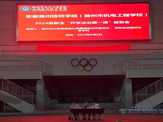 又逢开学季,普法进行时。安徽滁州技师学院(滁州市机电工程学校)为深入推进平安校园建设,筑牢未成年保护前沿防线,以法治之力护航2024级新生健康成长。9月6日,滁州市公安局南谯分局腰铺派出所、学校法制副校长李本科为2024年新生带来了一场“法治护航,安全成长”为主题的讲座。保卫处处长王欢、副处长许园艺、保卫处工作人员及全校2000余名师生参加了讲座。