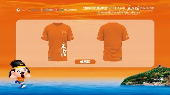 本次赛事的服装设计以橙色为核心色彩,通过橙色的热烈与激情,激发每一位跑者的潜能与斗志。服装的正面精心绣制了采石矶形变图案,背后赛事的全称,字体设计简洁有力,与服装正面的图案相呼应。服装在设计上既注重服装功能性与舒适性的平衡,又巧妙地融入了马鞍山的城市特色,展现出赛事的独特魅力与跑者们的精神风貌。