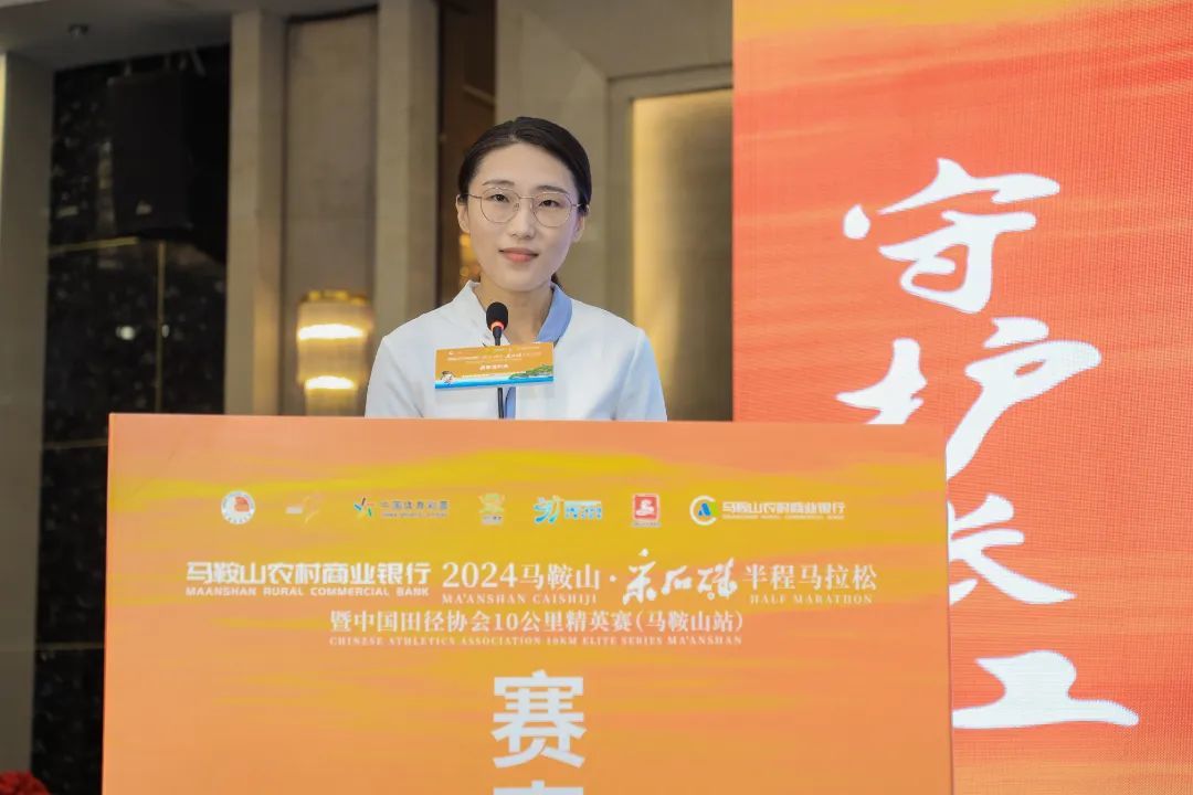 会上,马鞍山市人民政府副市长阚青鹤致欢迎辞,向参加发布会的媒体记者、跑团朋友表示热烈欢迎。她表示,马鞍山市是一座古今辉映的文明之城、左右逢源的开放之城、刚柔并济的产业之城、山水相间的生态之城。近年来,马鞍山市致力以“体育+”“+体育”为新引擎,办大赛、强体育,借赛兴城,以赛惠民,不断满足人民群众高品质健身需求,不断扩大城市体育的“朋友圈”,不断构建群众体育、竞技体育、体育产业发展新格局,不断探索文化为魂、旅游为体、体育为用的融合发展新路径。