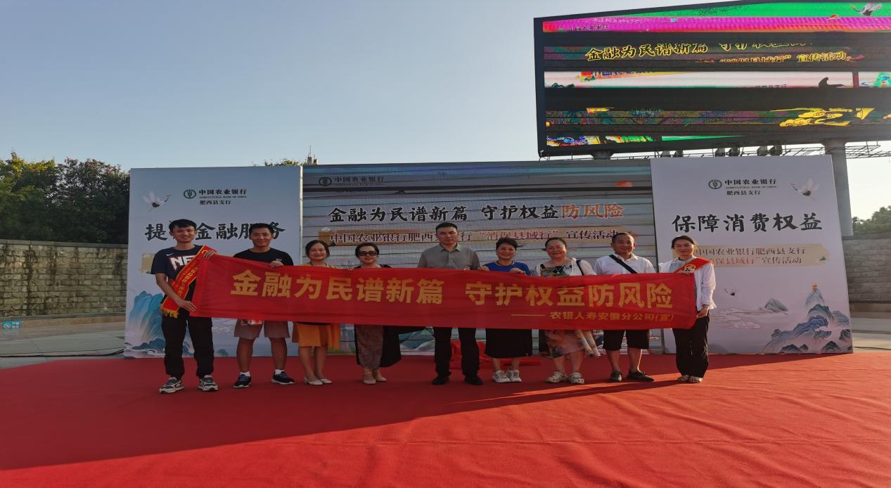 9月9日下午,农银人寿安徽分公司管理本部会同中国农业银行肥西县支行,肥西县县政府,肥西县公安局消保处,在肥西县文化广场开展了金融宣传活动。