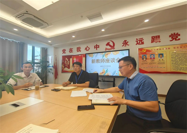 葛金灿对新进教师提出希望:一要静得下心,要适应新环境,融入新集体,成为团结互助的同伴;二要沉得住气,不抱怨、不埋怨。王金胜从以爱育人、情感教育,从心出发、不忘初心,不断学习、提升自我,团结协作、共创辉煌四个方面向新教师提出要求。