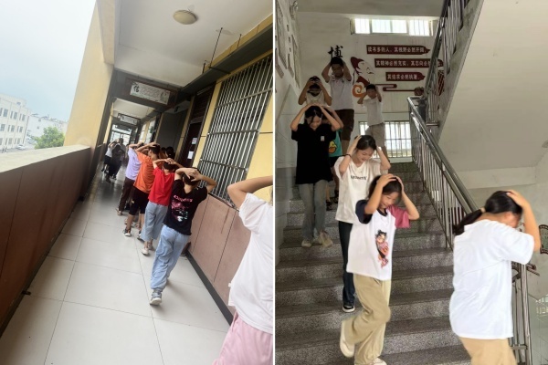 随着演练指令的下达,能仁学校的校园内迅速进入了应急状态。师生们迅速采取自我保护措施,躲到课桌下或墙角,用双手护住头部,等待震动过后按照指令进行疏散。