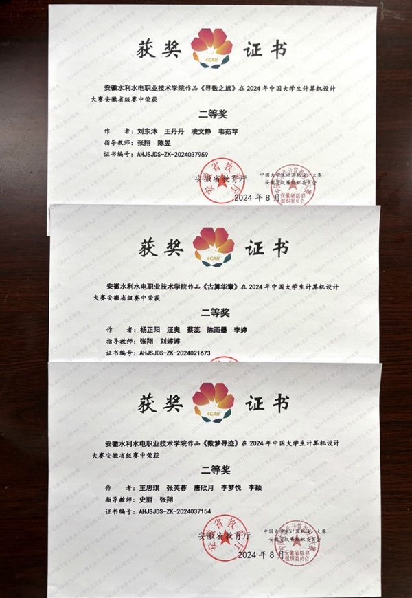 近日,2024年中国大学生计算机设计大赛安徽省级赛评审结果公示,经过激烈角逐,安徽水利水电职业技术学院电子信息工程学院学生作品喜获大赛二等奖3项。
