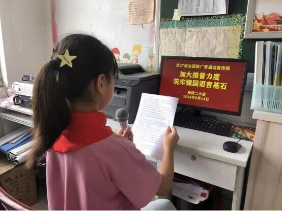 推普周中,一系列丰富多彩的活动,充分展示孩子们对祖国的热爱,对语言的赞美,对文化的自信。该校将以推普周为契机,形成长效机制,坚持文化传承,时时讲普通话,处处写规范字,并持续做好宣传发动工作,将语言文字规范化辐射到学校周围,实现一个学生带动一个家庭,一个家庭推动一个群体,带动整个社会养成自觉讲普通话,写规范字,做文明人!(图文/陈晓钰 徐波 李帮勇 王劲松)
