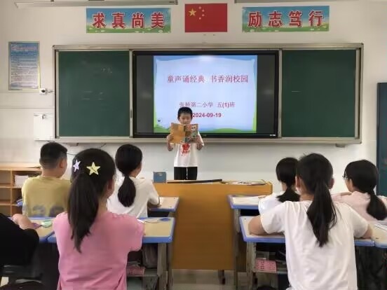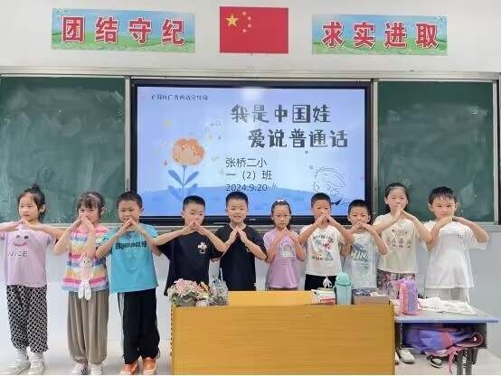 张桥二小紧紧围绕“加大推普力度,筑牢强国语言基石”这一主题,利用班会、电子显示屏营造说、用普通话的浓厚氛围;利用全校集会、黑板报宣传、班队活动等阵地渲染推普气氛,扩大推普宣传的影响;选拔师生形象代言人引导全校师生天天说普通话,时时讲普通话,在作业和板书中用规范字。