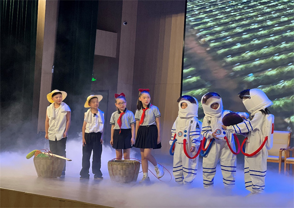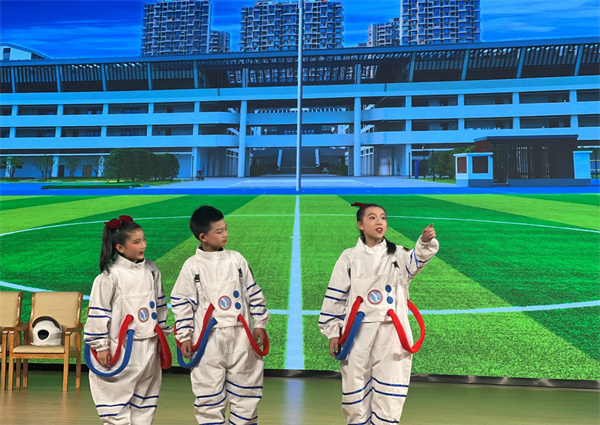 飞离地球,遨游太空,是中华民族千百年来的梦想。课本剧《飞天逐梦》以“航天梦”为主题,写了小辉、甜甜、萌萌三位小学生勇闯月球的故事。本剧中,孩子们用舞蹈、情景剧和朗诵,将传统文化与现代科技相融合,展示了勇于探索、敢于追梦的航天精神。