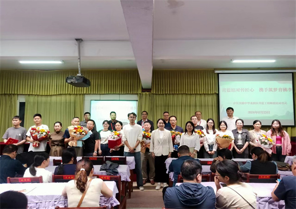 聘书既是一份荣誉,也是一份责任。本次活动共促成10对班主任师徒和7对教学师徒的结对。汪华强宣读完结对名单后,徒弟们向师父献上鲜花,并与师父们共同合影留念。