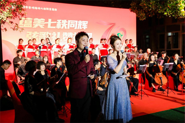 沉浸在美妙的交响乐之中,一曲曲时代经典开启一场七十年的时空之旅。背景视频中的一幕幕画面,向我们展现了宿幼70年的沧桑巨变,一代代教师的薪火相传,以及宿幼孩子们的快乐成长。