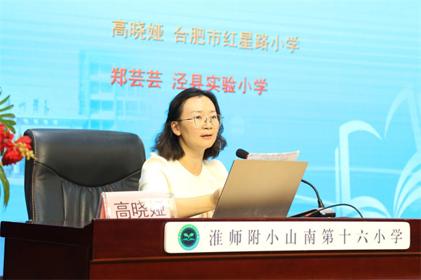 下半场会议分学段、分会场在各承办校召开,合肥市“新课标校本行动”基地校建设项目3所基地校在淮师附小山南第十六小学会场参与“基于任务的单元主题”典型案例展示、交流。
