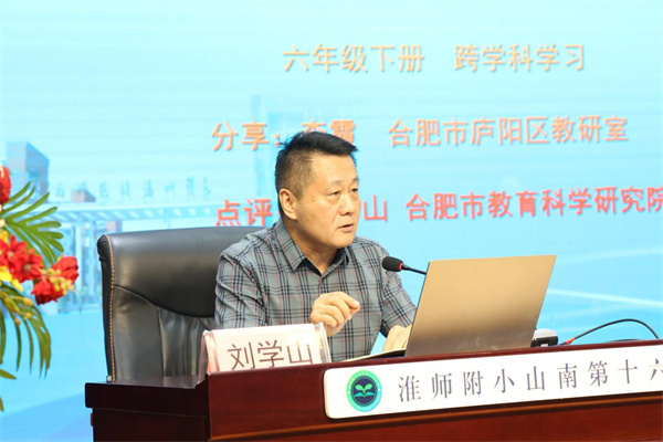 针对李霞老师的分享内容以及团队的探究成果,合肥市教科院课程研究与发展中心主任、小学语文教研员刘学山老师在给予高度评价的同时,也提出了自己的思考。刘学山老师指出,对于老师们来说,跨学科学习是创新,也是挑战。当我们运用多种融合性学习方式辅助语文教学时,要关注到资源的取舍、呈现的方式、使用的时机……教学设计一定要能依标扣本,以单元视角统整主题,确定主题引领下的任务型学习,探索以学生为中心的语文课堂。