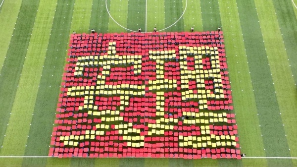 随着学生方阵摆出“10、9、8、7……”数字倒计时字样,军训汇报表演正式开始。花样操方阵编排巧妙,依次呈现“我爱安理”“自信创一流”“我爱中国”“75”等字样和图案,表达了2024级新生对学校的热爱之情,对祖国的深情告白,为新中国成立75周年献上美好祝福。