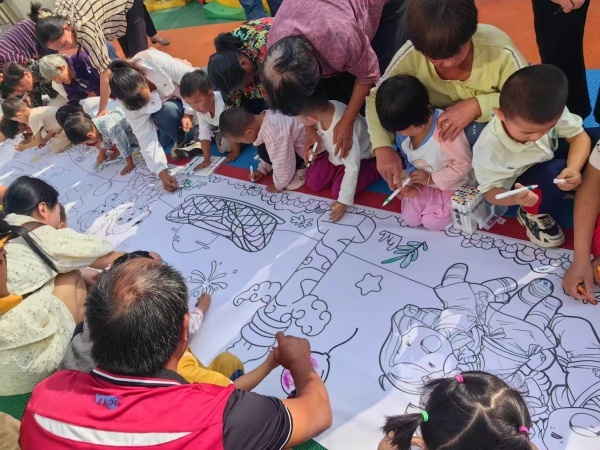 活动中,孩子们拿起画笔,表达自己的主题创意,同时,还与家长一起在长卷上共同创作,用色彩斑斓的画笔描绘出他们心中的中国红。一幅幅生动的画作不仅展示了孩子们的创造力和想象力,也体现了他们对祖国的深厚情感。