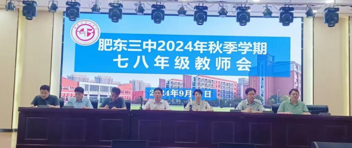 为进一步做好七八年级教育教学工作,9月27日下午,肥东三中2024年秋季学期七八年级教师会在总部多功能会议室召开,全体行政领导、七八年级教师和教辅工勤人员参加。会议由党委委员、办公室主任王军主持。