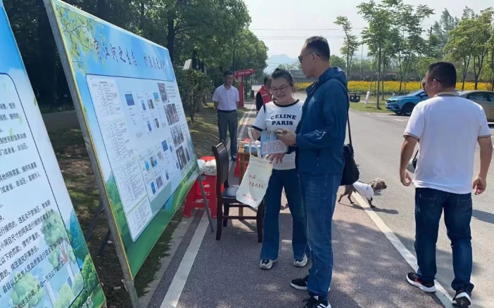图为区农业农村水利局在滨江公园开展河湖长制及禁渔宣传活动。