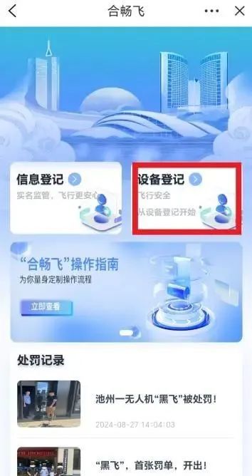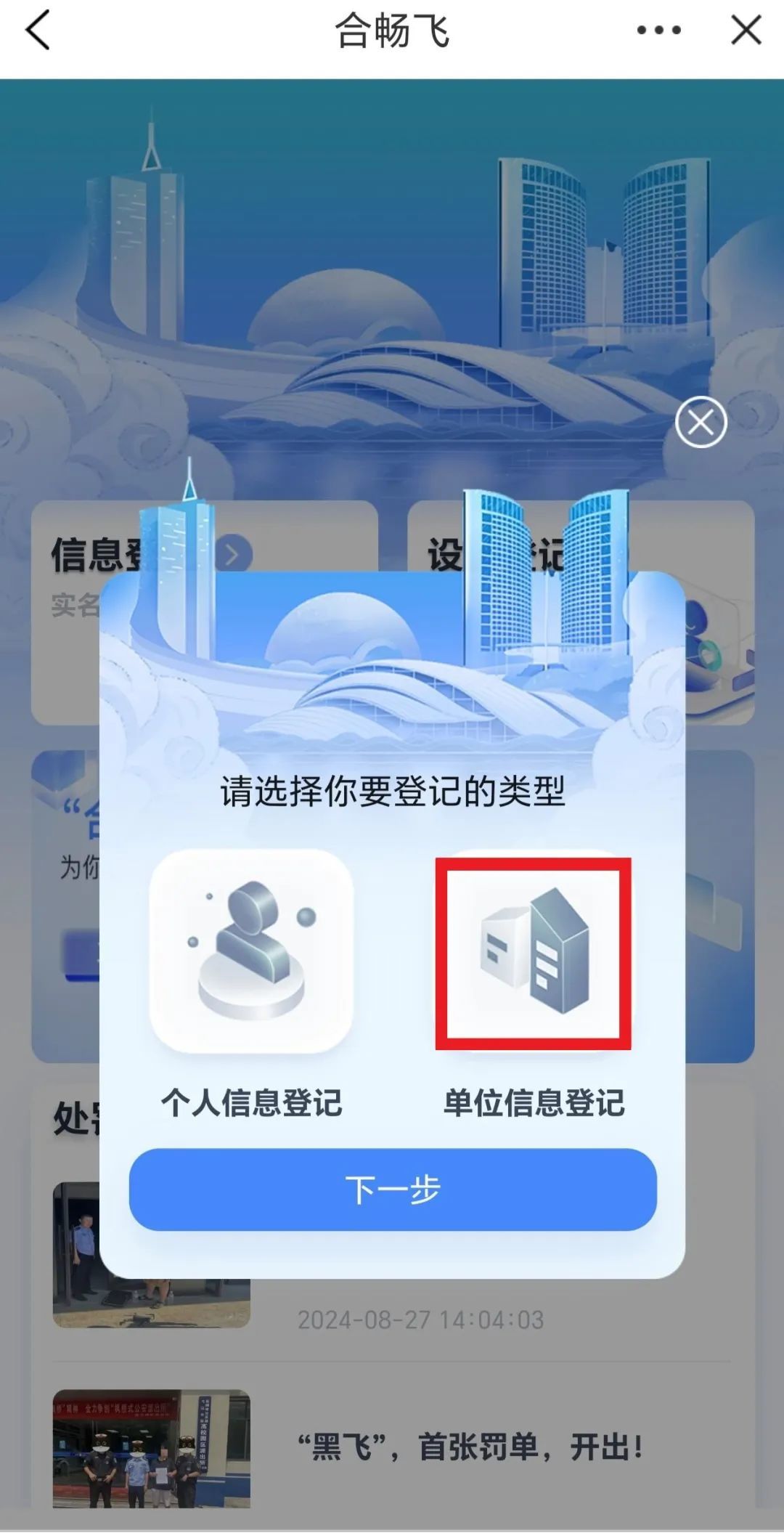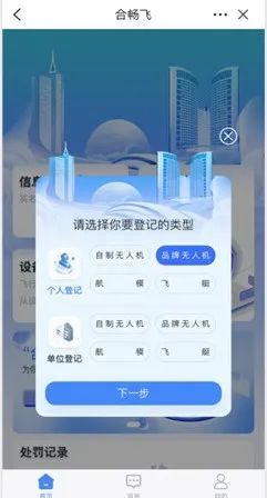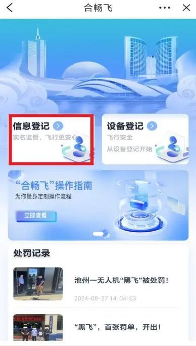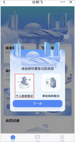 进入“合畅飞”界面,点击信息登记个人飞手,点击个人信息登记,根据页面提示提交相关信息。