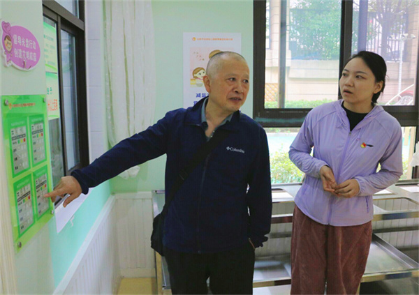 营养健康专家实地查看了园所的营养健康角,通过翻看营养健康角放置的膳食营养和秋季传染病宣传单页、膳食指南及查看身高体重秤、体重指数大转盘、血压仪等,肯定了营养健康角仪器投放的适宜性及环境营造的温馨舒适。“三减三健”是国家开展的一项全民健康生活方式专项行动,在实地检查中,专家重点查看了食堂对“三减三健”的落实情况,了解园所制作餐食每日盐、油、糖的使用量。