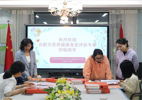 为进一步加强师幼营养健康意识,切实保障广大师生的健康膳食和食品安全,10月16日上午,由合肥市卫健委组织的评审专家组一行莅临合肥市双岗幼儿园教育集团悦城分园,进行营养健康食堂评估检查。合肥市双岗幼儿园党支部书记、集团总园长余冬梅、副园长张庆云、办公室副主任徐益航全程陪同。