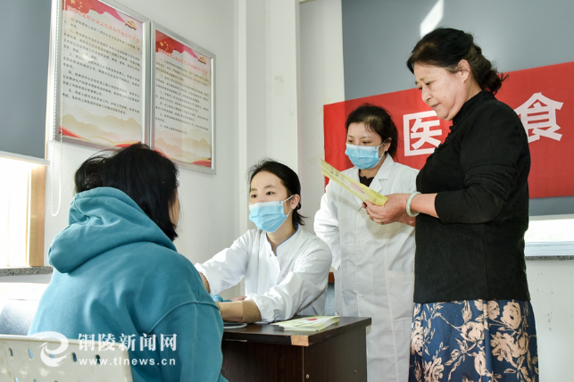日前,在铜陵市铜官区阳光社区育林活动中心,社区卫生服务中心医务人员为居民测量血压,开展中医预防心脑血管疾病宣传和饮食健康调理指导。(储著传)