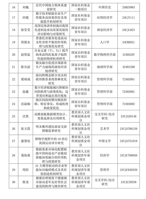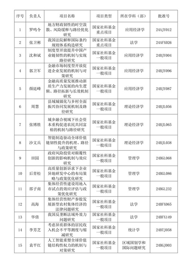 近日,全国哲学社会科学工作办公室公布了2024年度科研项目评审结果,至此,2024年度国家级、教育部科研项目的立项结果均已公布。安徽财经大学共获批国家社科基金年度项目19项(含重点项目2项),国家自然科学基金项目5项,教育部人文社会科学项目6项。学校已连续六年获批国家社会科学或自然科学基金重大(重点)项目,国家社会科学基金年度项目立项数位居安徽省高校前3、全国财经类高校前列。
