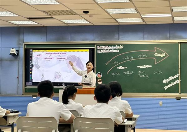 此次市级评比活动分为线上视频课和线下说课与答辩两轮评比,旨在提升教师的信息素养和创新能力,推动智慧课堂与教育教学的深度融合。陈文嘉老师凭借执教课程内容《Unit5 What does he do? Part B Read and write》的出色表现,赢得了评委们的一致认可和高度赞誉。该课例基于三步十段智慧课堂教学模式,教师从课前、课中、课后三个阶段进行精心设计,充分践行了“以学生为中心、技术为辅助、能力为导向”的教学理念。通过高度互动与个性化的教学环境,成功激发了学生的阅读兴趣,培养了他们的批判性思维和问题解决能力,实现了知识的深度理解与迁移创新。