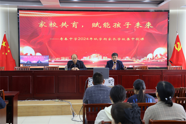 本次家长会分两个阶段进行。在第一阶段的大会上,学校党总支书记陈士传作《家校共育,赋能孩子未来》的主题讲话。陈士传对家长们的到来表示热烈欢迎和衷心感谢,希望通过家长会的面对面沟通,让家长们对寿春中学有更全面、更深入的了解,共同促进学生的全面进步与发展。