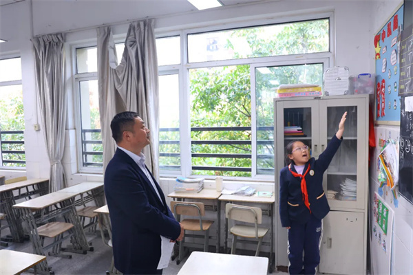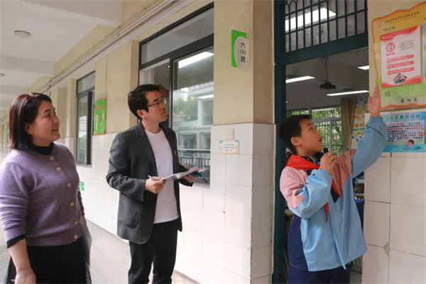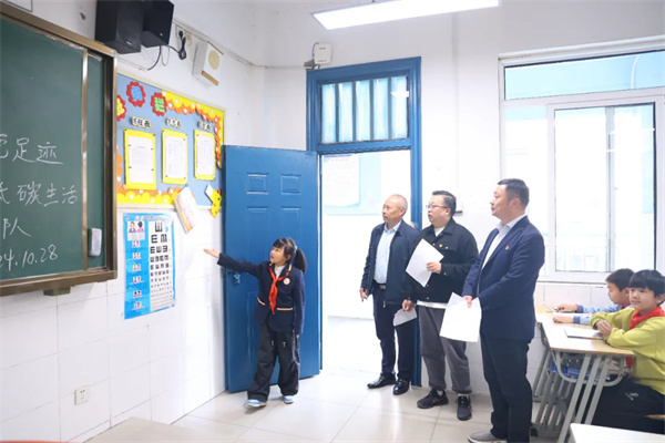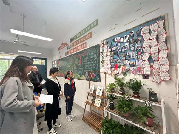 评委们在各班小讲解员的带领和讲解下,分别从班级名片、荣誉墙、公告栏、卫生角、图书区、绿植区、黑板报和创新特色区进行现场查看与评分。