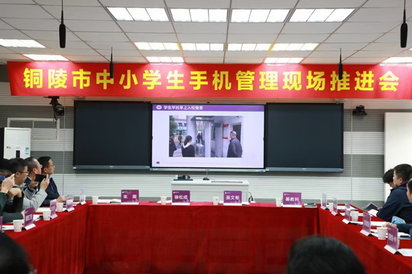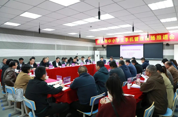 11月1日下午,全市中小学手机管理现场推进会在市第五中学召开。铜陵市教体局党委委员、副局长吴文彬出席并讲话。县区教育主管部门业务科室负责人,全市部分中小学校负责人、处室负责人近40人参会观摩。