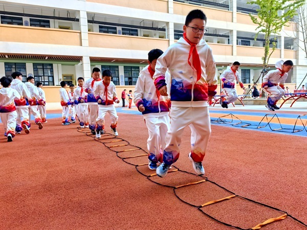 王俊向记者详细介绍了校区开展大课间活动情况。他表示,学校因地制宜,各班设计丰富多彩的大课间活动,保证学生每天有足够的户外活动时间。希望通过这些富有特色的大课间活动,让孩子们身心得到锻炼,在快乐中健康成长。来自四(15)班的谈起航兴奋地对记者说:“我最喜欢大课间活动了,每次都能和同学们一起玩得很开心,这就是我们应有的模样。”(文图/余增磊)