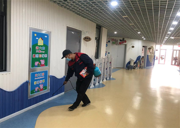 专业人员身穿工作服,佩戴口罩,严格按照卫生消毒管理标准操作,对幼儿园的活动室、各功能室、厨房、楼梯、室内走廊、卫生间等室内区域,进行全方位的消杀,不遗留任何一个角落,筑牢校园卫生防护墙。