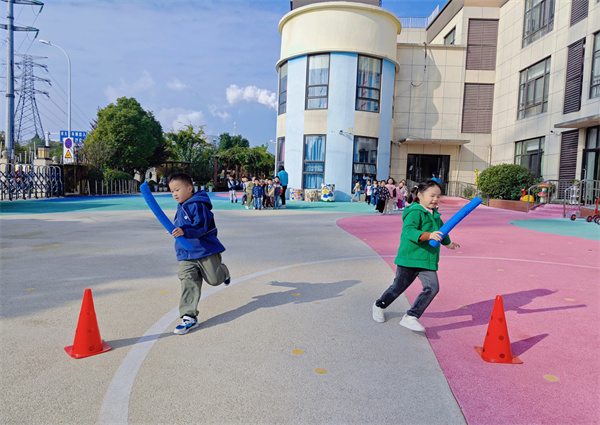 在秋日的暖阳中,大班小朋友开始了接力跑比赛,他们迈着矫健的身姿与队友团结互助,在积极友爱的氛围中体验了合作游戏的力量,奔跑在运动场上,一起与健康同步。