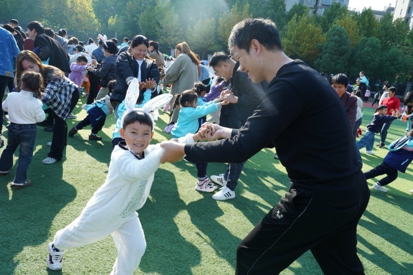 意气风发的教职工们整装齐发,踏着青春的节拍,用矫健的舞姿为运动会增添一抹绚丽的色彩。随后,小运动员们在“蚂蚁运豆”“勇敢奔跑的小老虎”等趣味亲子游戏中,体验到了团结协作、努力奋进的体育精神,以及亲情陪伴的快乐;在“动物爸爸趣劳动”的接力赛中,爸爸奋力拼搏的精神深深感染着所有观众;动物园里大丰收,老师们密切配合,“抢收”秋天的果实……比赛现场热闹非凡,掌声、笑声、呐喊声、尖叫声,响彻校园。