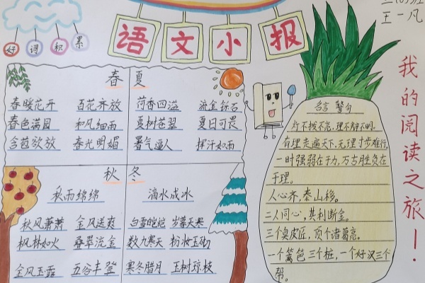 好词好句小报内容涵盖了多个方面,包括描写自然、人物、动物、情感等各个方面的词汇和句子。每个板块都设计得别具一格,既有生动有趣的插图,又有简洁明了的文字说明。学生们通过精心挑选和整理,将这些好词好句汇聚在一起,形成了一份丰富多彩的语言宝典。