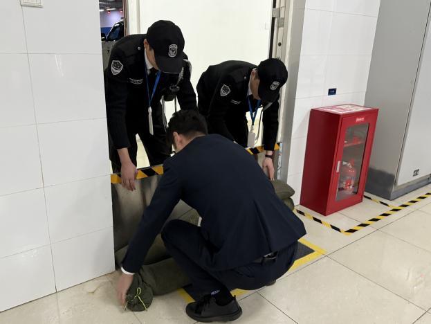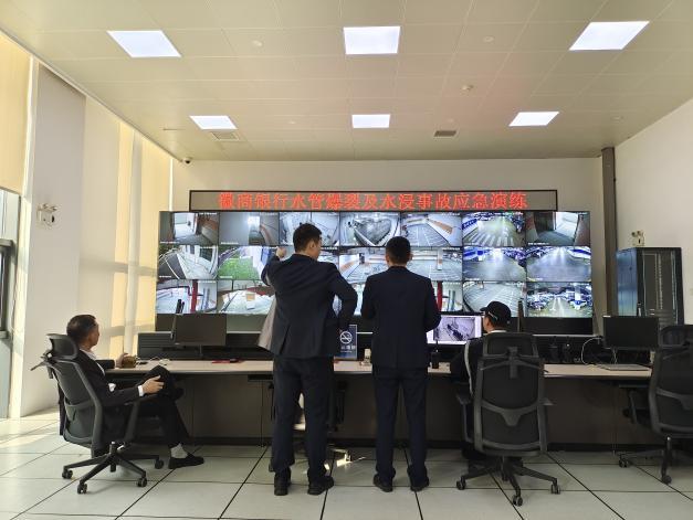 服务团队在合肥徽商银行、交通银行、悦方中心分别演练,模拟生活水泵房水管突然爆裂导致的水浸事故。模拟警报响起,团队迅速响应,立即向应急领导小组报告,并按照应急预案展开行动。