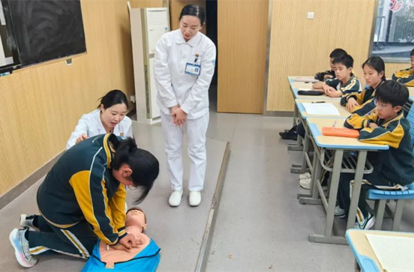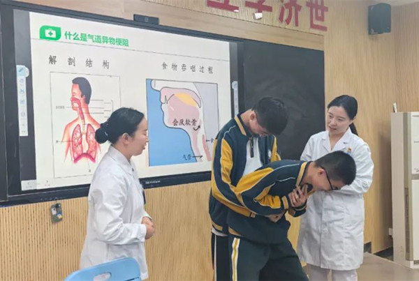 本次急救知识进课堂的主要内容包括海姆立克急救法、心肺复苏、常见突发状况的应急处理等,医护人员通过一个个鲜活的案例,向同学们讲述了掌握急救知识的重要性。整场活动,学生积极参与,认真聆听并在实践环节踊跃尝试,切实掌握了急救技巧。
