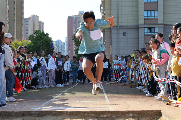 跳远场地也是热闹非凡。蓄势、跳跃,孩子们腾空而起,用身体划出一道优美的弧线,引起阵阵惊叹。落地的瞬间,超越的不仅是距离,还有自己。