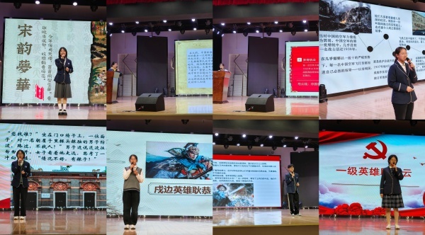 其他选手的讲述也极具风采与特色。吴钰洁以“宋韵花事”之美题娓娓道来宋代词人李清照跌宕起伏的一生;李恩情以铿锵有力之言语叙述了“绝域孤军”安西军的壮烈悲歌;王欣怡用清晰的语言讲述了“五四运动”前因后果,号召大家弘扬五四精神,响应时代召唤;刘懿行用“凌空壮史,棨戟遥临”之题追忆了空军烈士阎海文身陷日军阵营英勇赴死的英雄事迹;袁梦琪讲述了王会悟的“守船”故事,诠释了“亭亭而立曙光现”之坚韧风姿,见证了红船之上冉冉升起的东方曙光;夏欣怡以时间顺序道出“戍边英雄耿恭”坚守城池、临危不惧,而后“十三壮士归玉门”的悲壮事迹;周振鹏回顾了老英雄冯子材的抗法传奇,赞颂了勇于挺身而出、肩负家国重任的爱国主义精神;刘玥再叙了我们耳熟能详的“一级英雄邱少云”的故事,赞颂了其任凭烈火焚身也严守纪律的勇于牺牲的抗美援朝精神。