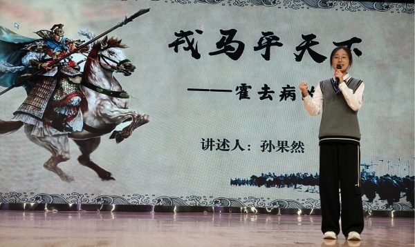 孙果然的故事以《戎马平天下——霍去病的一生》为题,直接点明了她要叙述的人物故事。尤为精妙的是,她以第一人称的方式讲述了霍去病短暂却璀璨的一生。时急时缓的语速、生动从容的动作……在她的演绎中,我仿佛看见了那个意气风发的少年郎,在战场上厮杀的身影。年少轻狂的热血,保家卫国的信念,在她的“自述”中无一不明晰,那一刻她不再是这个故事的讲述者,而似是成为了这个故事的主人公。