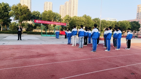 11月11日上午,肥东三中古河路校区新团员入团仪式在晨会期间举行。