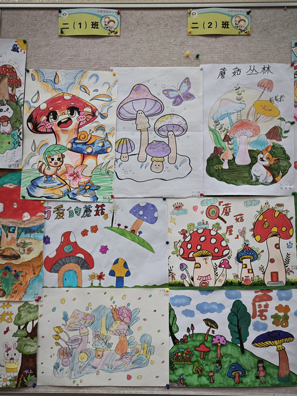 值得一提的是,在活动期间,同学们还展示了自己精心绘制的各种各样的蘑菇绘画作品。这些作品色彩斑斓、想象力丰富:有的蘑菇像一把把色彩绚丽的小伞,在森林中快乐生长;有的蘑菇被赋予了人的表情和动作,仿佛在诉说着自己的故事。一幅幅画作不仅展现了同学们对蘑菇的好奇与喜爱,更体现了他们无限的创造力和对大自然的热爱。