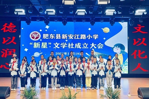 为丰富学生的校园文化生活,培养学生写作兴趣,给学生提供一个展示才华和锻炼写作能力的平台,2024年11月18日,肥东县新安江路小学 “新星”文学社召开成立大会。