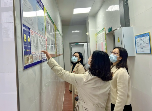 督导评估组来到幼儿园食堂,对食堂的设施设备、卫生状况、规章制度与储存等环节进行了严格检查。在肯定食堂工作的同时,也提出了一些建设性的意见和建议,为幼儿园进一步提升食堂管理水平指明了方向。