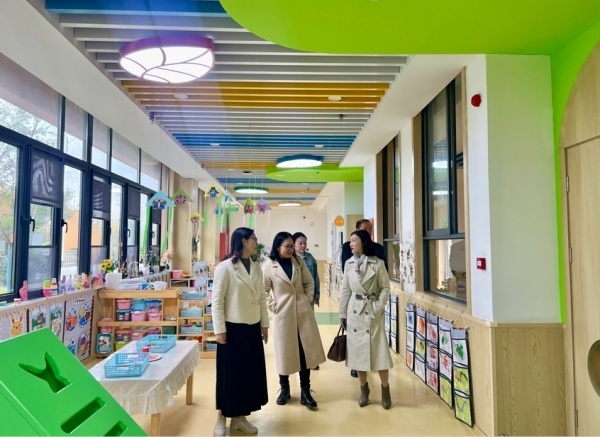 督导评估组一行首先对幼儿园的整体环境进行了细致察看。从色彩斑斓的教学楼外观到整洁有序的教室布置,从充满创意的活动区域到安全舒适的户外场地,每一处都彰显着幼儿园为孩子们精心打造的成长空间。