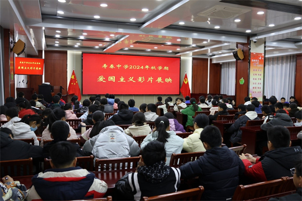 为引导学生坚定理想信念,厚植爱国主义情怀, 11月28日下午,寿县寿春中学组织七年级部分师生在学校会议室观看爱国主义教育影片。