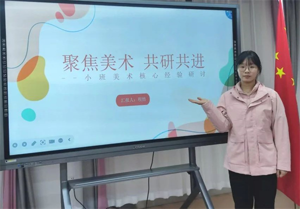 小班程然老师围绕“美术领域核心经验”进行了深入研讨。通过美术实践案例分享,展示了如何在美术活动中引导幼儿观察、想象、创造,并在此过程中培养幼儿的审美能力和表现力。教师们一致认为,美术活动是幼儿表达自我、感知世界的重要方式,应继续加强在这方面的探索与实践。